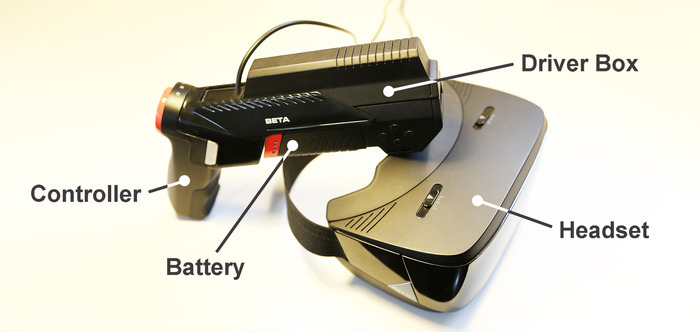 The positional tracking is also built in, so there's no need for a camera, it's wireless AND it comes with its own controller which can form into a gun, a steering wheel, joystick or standard controller like some sort of Power Rangers Zord.