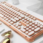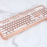 Many readers will know that I love white computer components and when I first saw the new AZIO Retro Mechanical Keyboard I was awestruck with the ‘POSH' Version that was available for £190 inc vat. White leather, mechanical switches, orange backlit keys – it was a lovely retro design brought into the modern age. I had to get my hands on one to review.