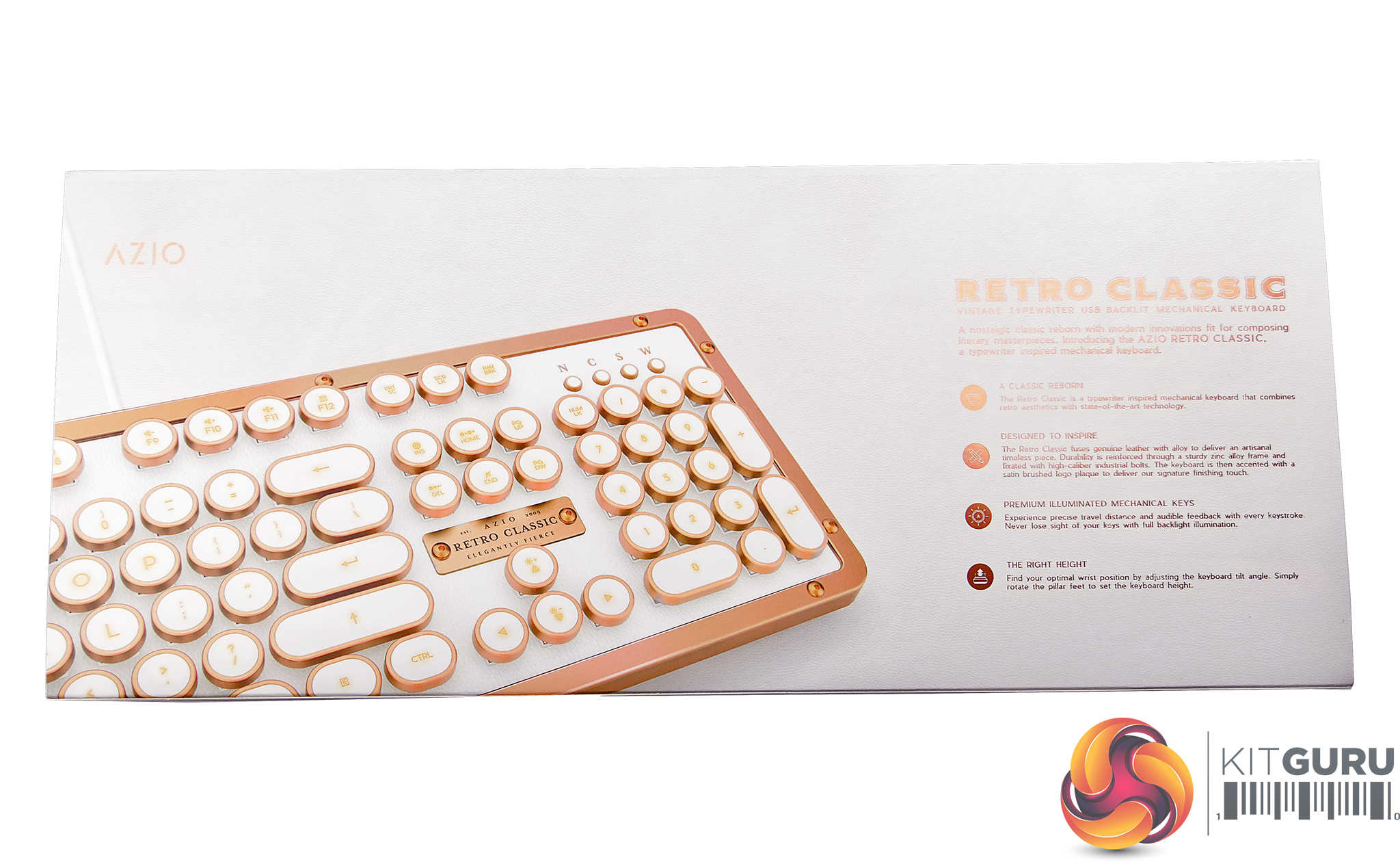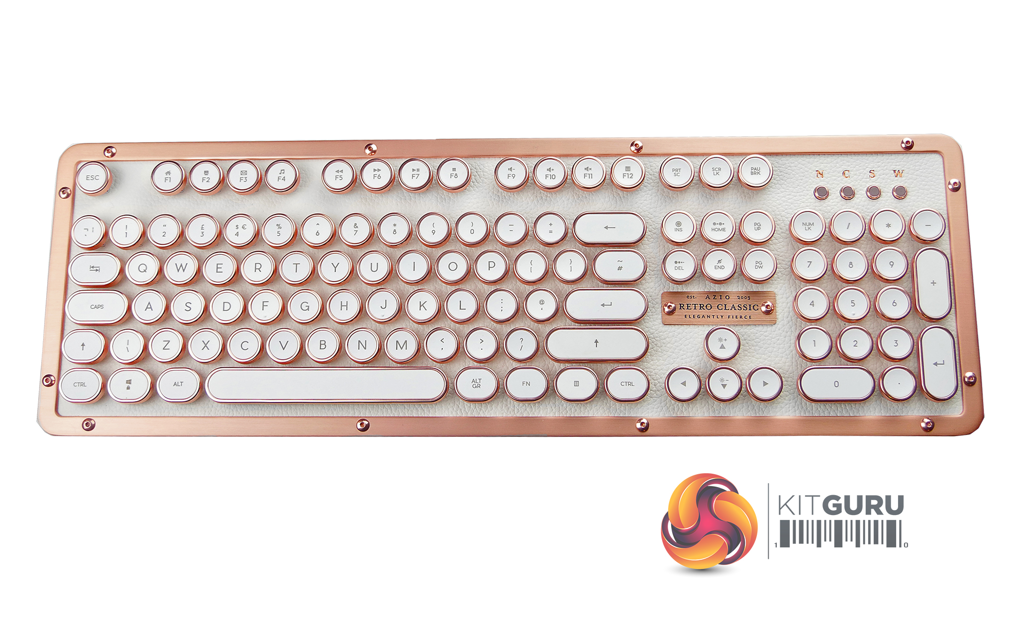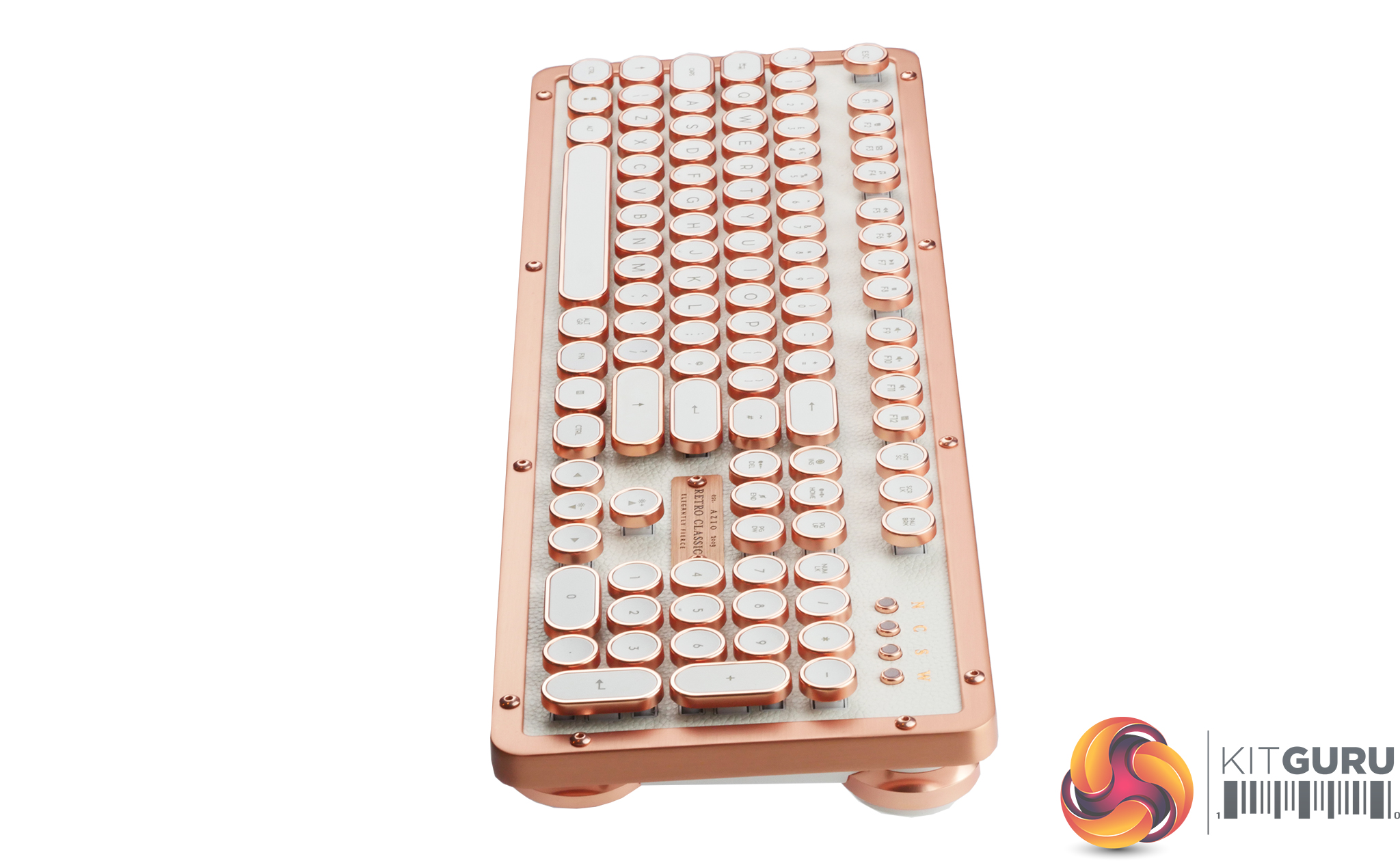 Azio is probably a company you've never heard but they seem to have created something truly beautiful. The Retro Classic keyboard. The round key cap design is reminiscent of vintage typewriters and the retro design featuring leather and copper certainly stands out. This keyboard features Azio Typelit mechanical switches that are tactile, clicky and illuminated with orange LEDs. With a retail price of £189.99 is this the most luxurious mechanical keyboard available? Or is it a case of form over function?