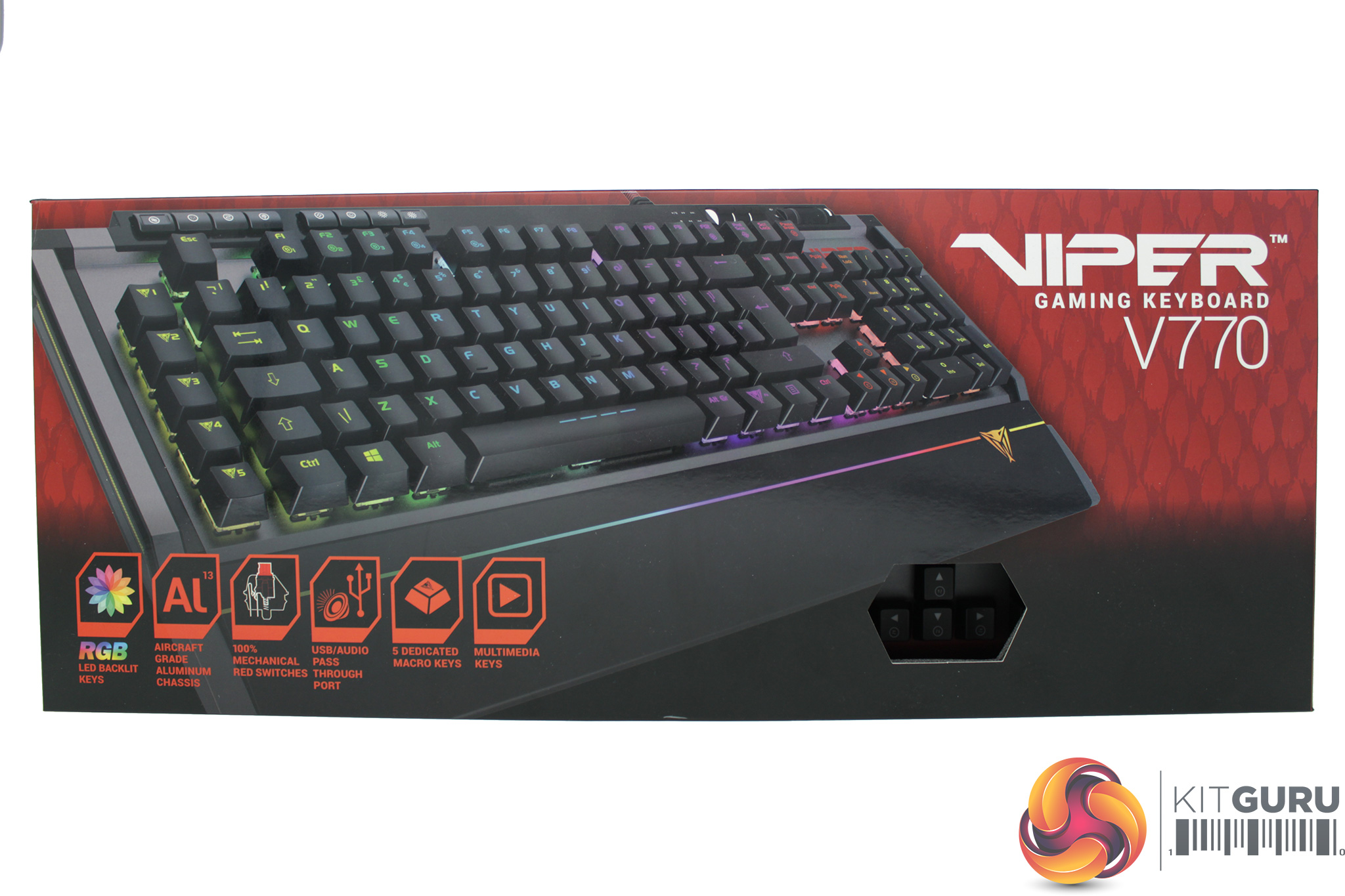 Patriot continues to run with its striking red and black packaging, placing its Viper gaming brand in the top right and features laid out in the bottom left. A prominent section is cut out to display the V770's keys, best utilised for floor models, or perhaps to please those who can't wait to get it out of the box, a little like myself.