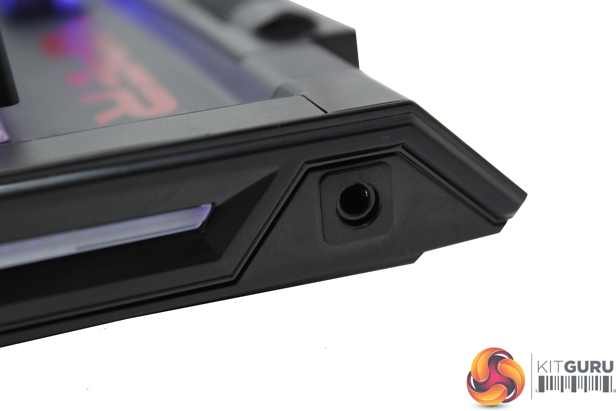 The Viper V770 continues to illuminate your room with an RGB LED strip either side of the keyboard. To the right hand side of the keyboard is also an audio pass-through, built specifically to make headphones and microphones a little more accessible. To the left is a USB pass-through that can be used for anything from USB-powered such as headsets and mice.