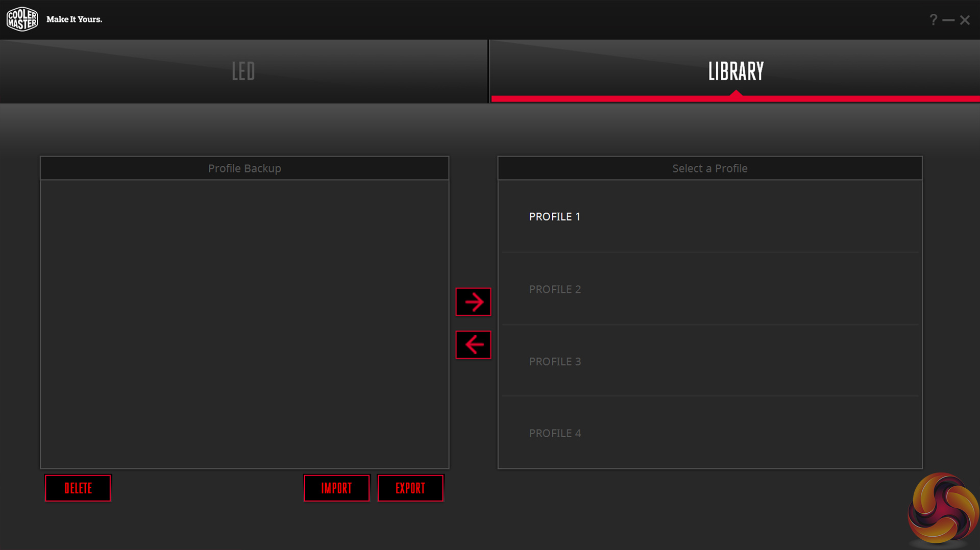 The next tab is called ‘library' and allows you to import and export your different profiles. This means you could import a profile from a friend, for example.