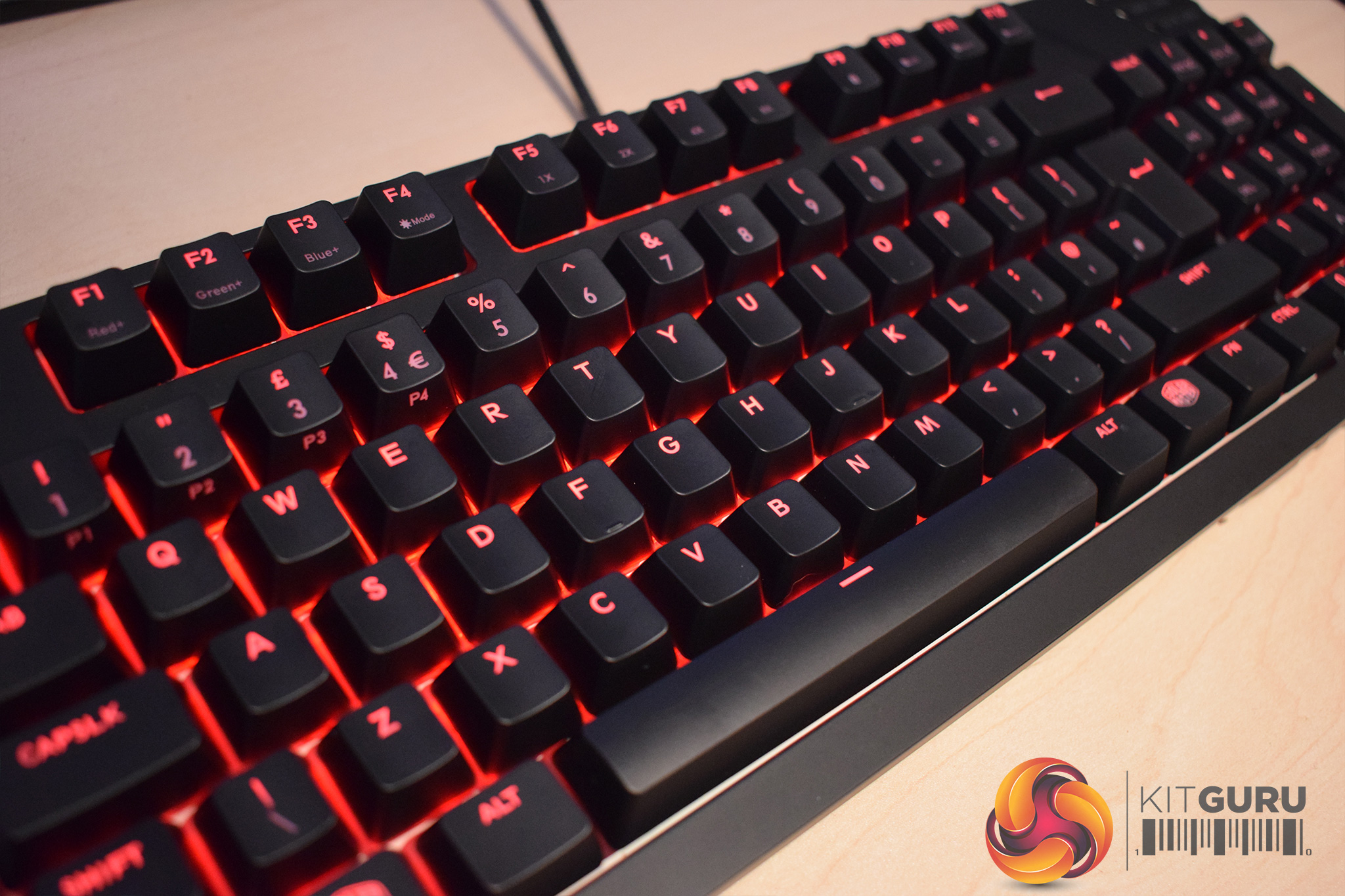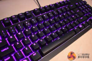 Gaming with the MasterKeys Pro M RGB is fine, though. The board features n-key rollover so ghosting was no issue, and there is also a Windows-lock function available.