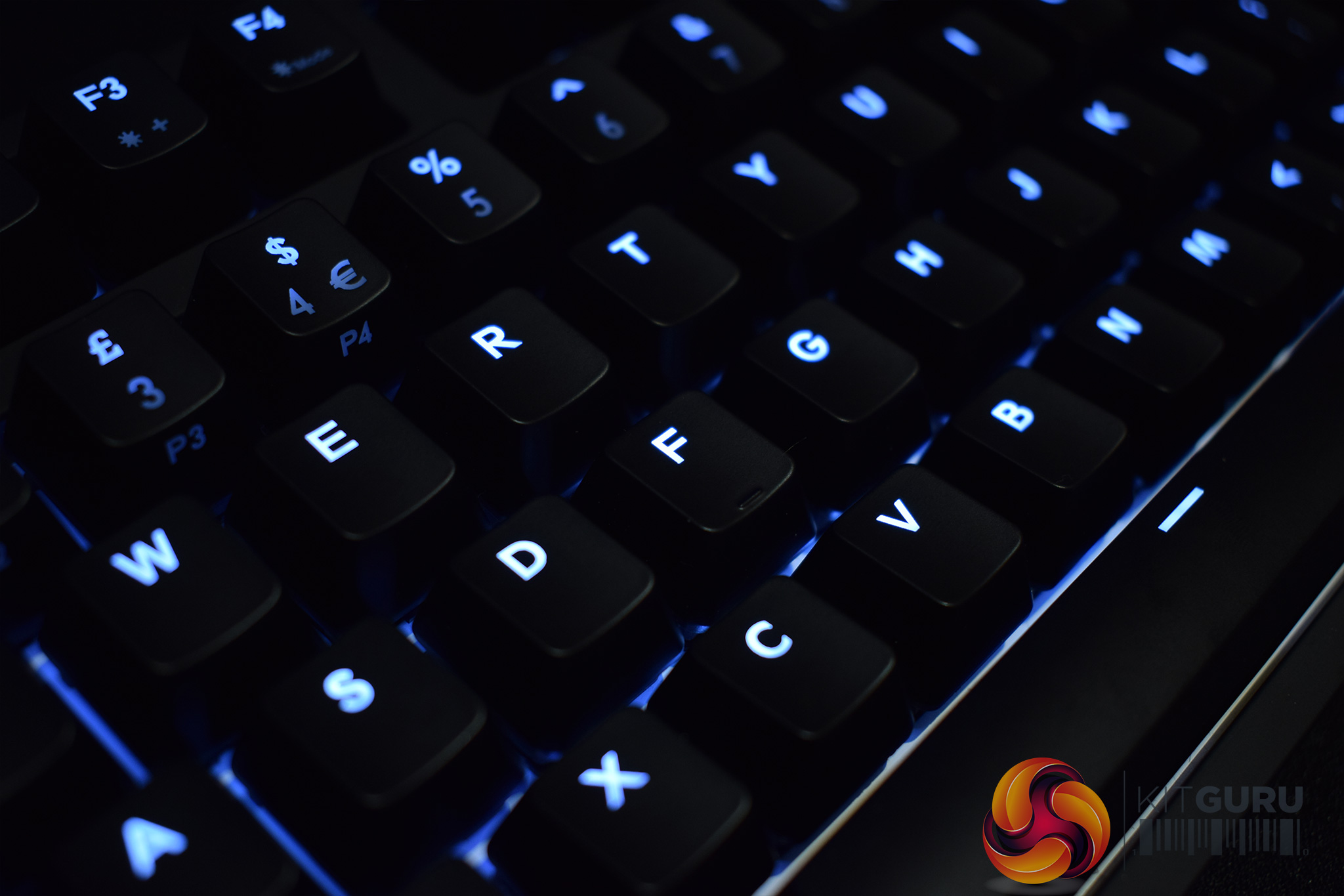 Recording macros is also straightforward: first press Fn+F11 to begin the process. Next, choose which key you wish to map the macro to (the available keys flash blue), and then the macro can be recorded. Fn+Esc ends the process.