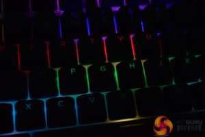 Elsewhere, the on-board controls work very well. Using F1-F4 allows you to configure the RGB lighting, and overall it is very successful. There are plenty of effects to choose from – including rainbow, reactive and static modes – and it is very easy to get your desired colour using the on-board red, green and blue modifiers.