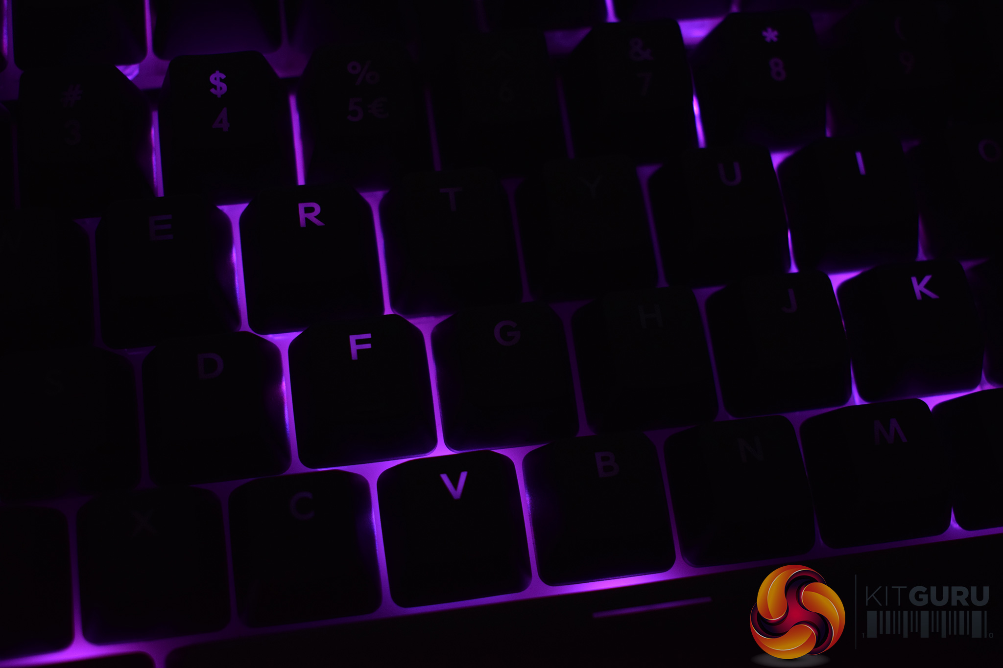 Elsewhere, the on-board controls work very well. Using F1-F4 allows you to configure the RGB lighting, and overall it is very successful. There are plenty of effects to choose from – including rainbow, reactive and static modes – and it is very easy to get your desired colour using the on-board red, green and blue modifiers.