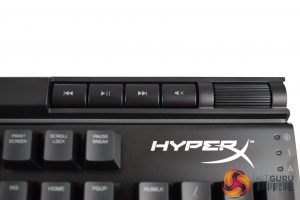 Two of the more obvious differences between the Alloy FPS and the Elite are the dedicated LED and media controls. Above, left, you can see the LED controls that are on the left-hand side of the board. From left-to-right, these buttons are as follows: brightness, LED mode, and the game mode enabler.