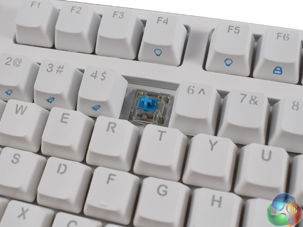 Lastly, removing the keycaps we get a look at the Cherry MX switches below. My F108 sample shipped with Browns, while the F107 shipped with Blues. Blues are my personal favourite, but there is also the choice between Black and Red switches should you prefer those.