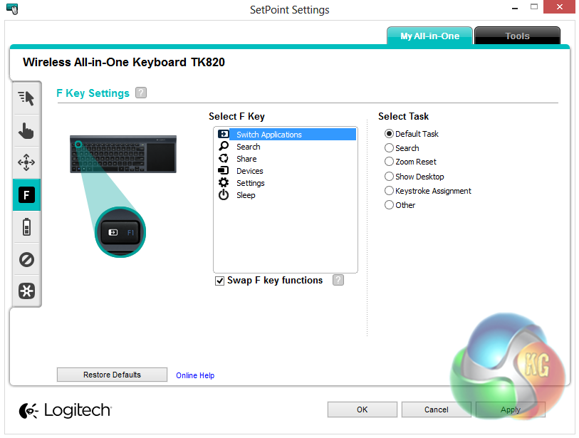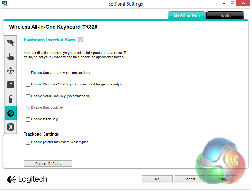 Logitech instruct us to download the software for the keyboard from their website, which lets us set up the multi-touch gestures for the touchpad.