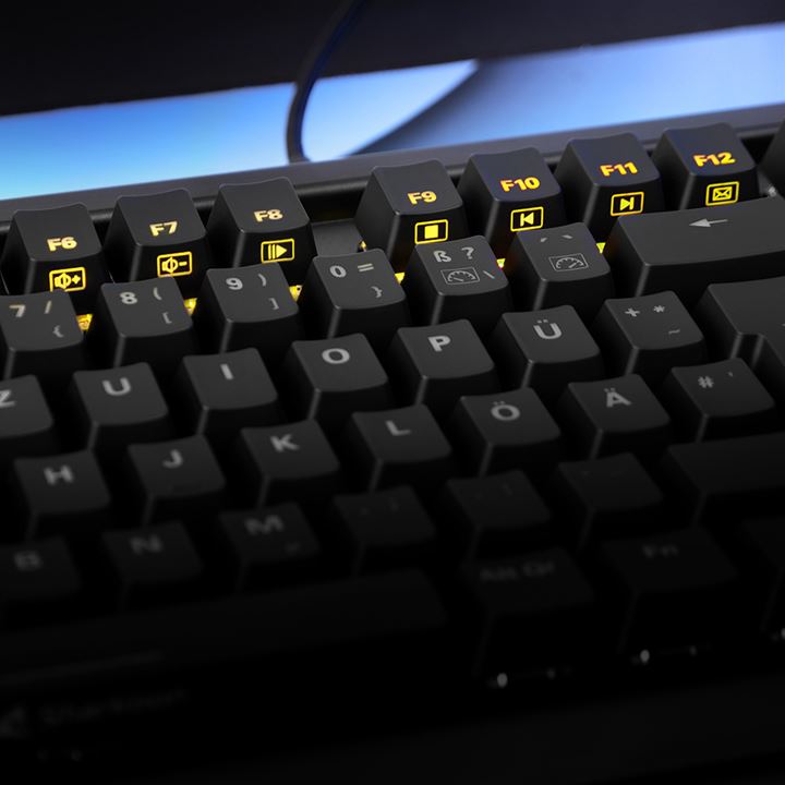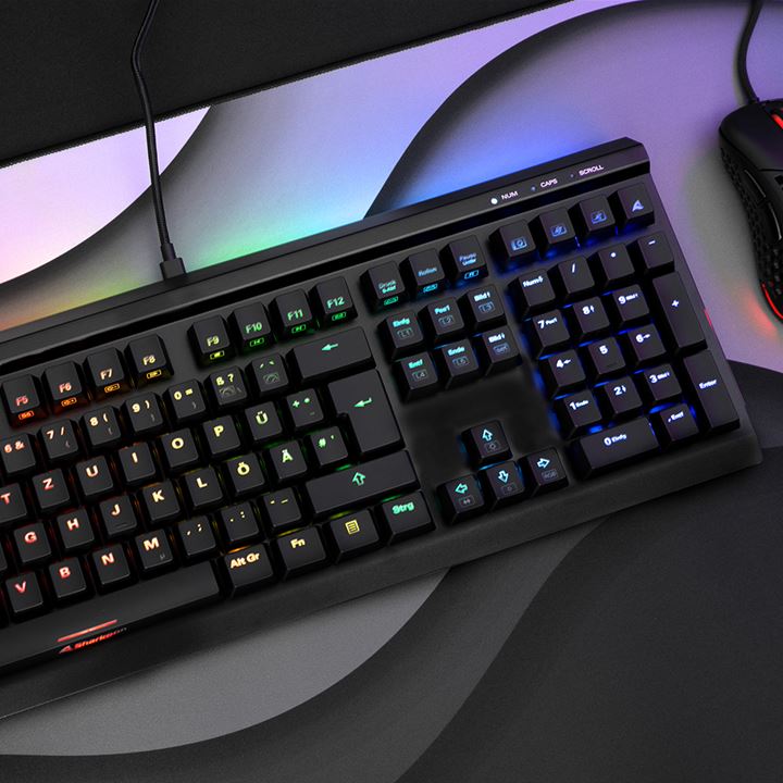 Sharkoon designed the SGK40 keyboard with gamers in mind. It comes equipped with linear red switches from Huano, which only require 45 grammes of actuation power and have a two-millimetre distance to the actuation point. The manufacturer claims the keys have a minimum working life cycle of 50 million keystrokes, ensuring long-lasting usage.