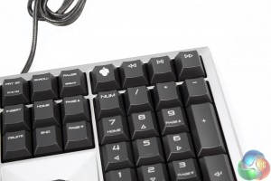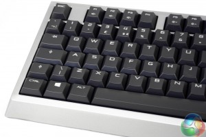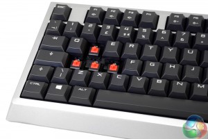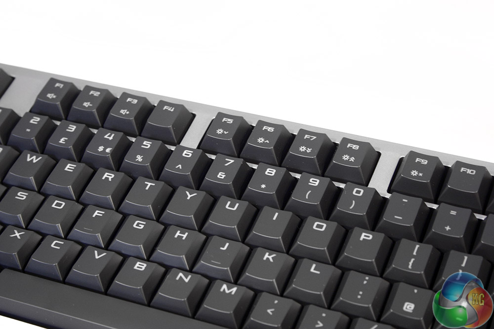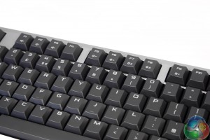 Since this is a keyboard that features backlighting, the keys have clear plastic lettering to allow the red LEDs to highlight each key. The surfaces of them are slightly concave in the usual style, though are actually a couple of millimetres shallower, which may translate to a faster actuation time.