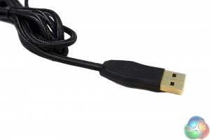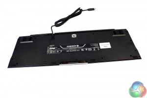 The back of the board is matte black with a centrally located Cherry logo. The braided cable on the other hand is not in the middle like most boards, but slightly off centre to the right. It can be routed much further along either side though, should you prefer.