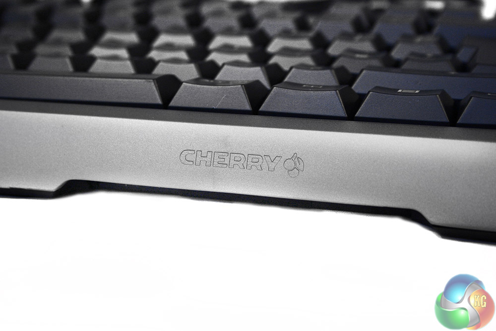 Without the wrist rest attached, the silver frame runs all the way around the edge too, with the only real styling being a small Cherry logo on the front.