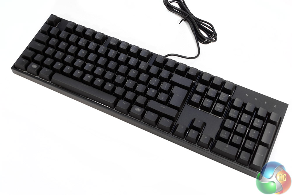 The keyboard is matt black with a similarly understated design. It is very neat and compact, with a white underbelly beneath the keycaps which should help dissipate the LED backlighting uniformly.