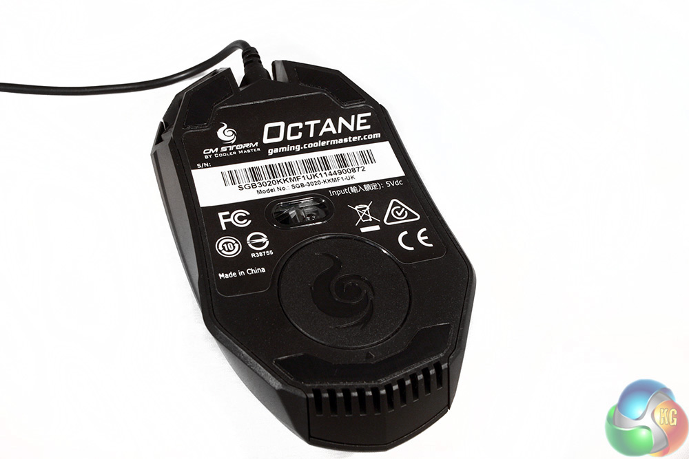 The underside of the Octane M35 is pretty typical as well, with three unbranded Teflon mouse feet and a centrally located mouse cable with a reinforced header. The optical sensor is located in the centre of the mouse and should perform well, since it is the well thought of Avago 3050.