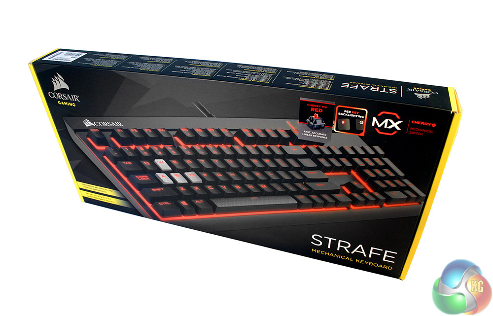 Corsair Gaming dismayed long-time fans last year when it dropped its famous sales logo in favour of a tribal tattoo. Following fan outrage however, it has made a comeback on the latest line up of products, like the STRAFE gaming keyboard that we are looking at today. Featuring everyone's favourite Cherry MX switches, textured key-cap replacements and a refined red key-bed, the STRAFE still sports a high price tag, but comes with many of the bells and whistles of Corsair's flagship boards.