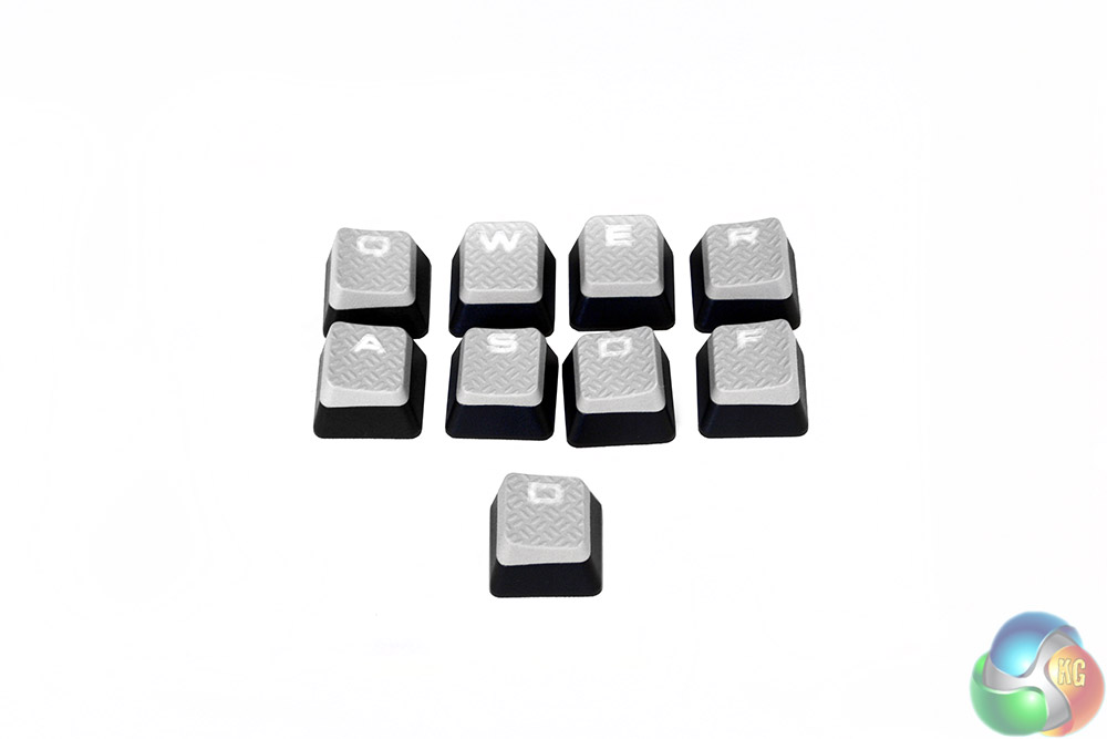 But the textured keys are the more impressive inclusion. They come vacuum sealed, which is a bit different. As well as having a textured metal-like surface, they also have different gradients than the usual keys and there are even a couple of variants for each of the W and D keys.