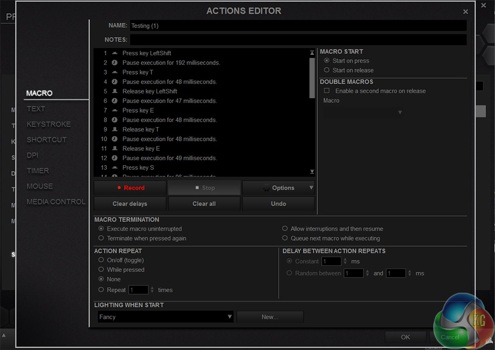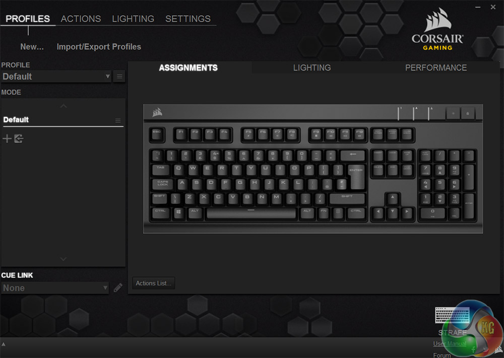One of the big selling points of this keyboard however, is that it supports the incredibly deep back-end software, known as the Corsair Utility Engine. It is much the same as when we reviewed the Corsair Vengeance K70, with all of the options for key assignments, lighting, macro recording etc.