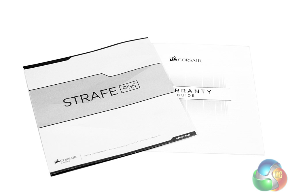 The Corsair Gaming STRAFE Silent comes with the usual warranty sheet and quick set up guide, though for those looking to delve deeper into the features or Corsair Utility software, you will need to read up online.