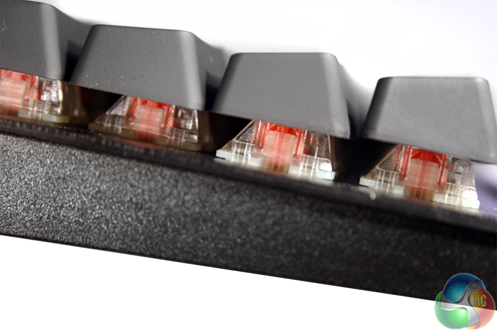 A nice touch are the stickers on the front which tell you that the Corsair Gaming Vengeance K70 RGB has Cherry MX Red switches. Some keyboard makers will just tell you its Cherry MX, or mechanical without specifying which.