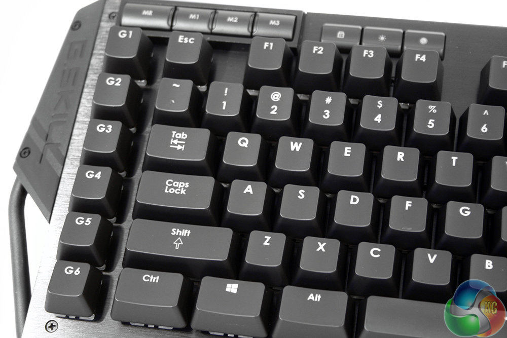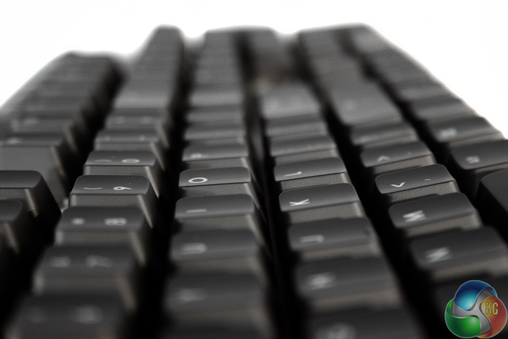The key caps are quite typical of this type of board, with the usual slightly concave structure and clear-plastic lettering which lets the backlighting do most of the work of telling you which letters and numbers are which.