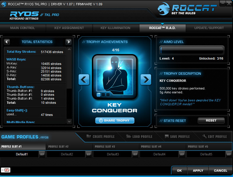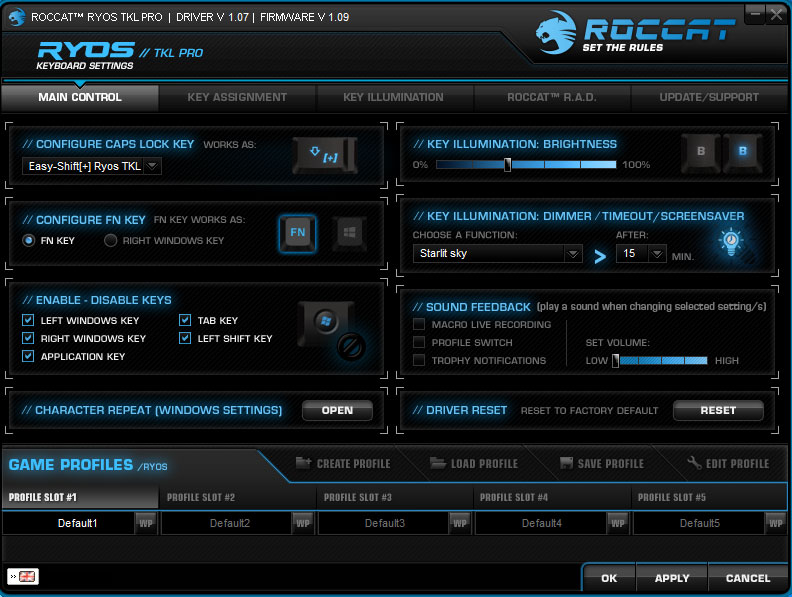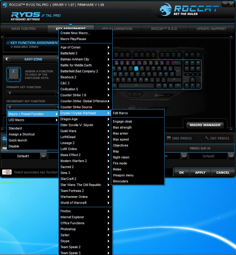Back end software for the keyboard is versatile and easy to navigate as most Roccat software is