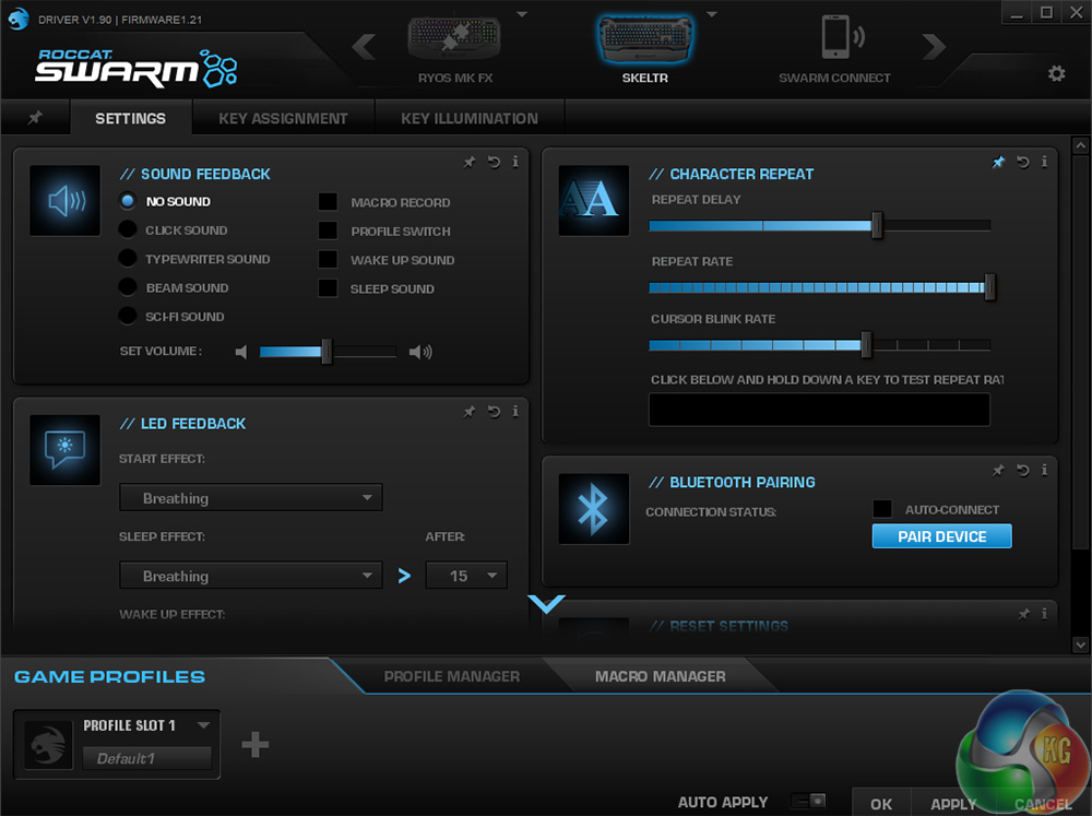 If you do not like those, of course you can always just remap anything you want and use EasyShift to give you quick access to it. This remains one of the better features of Roccat keyboards, especially considering it ditches the near useless CAPSLOCK key in the process.