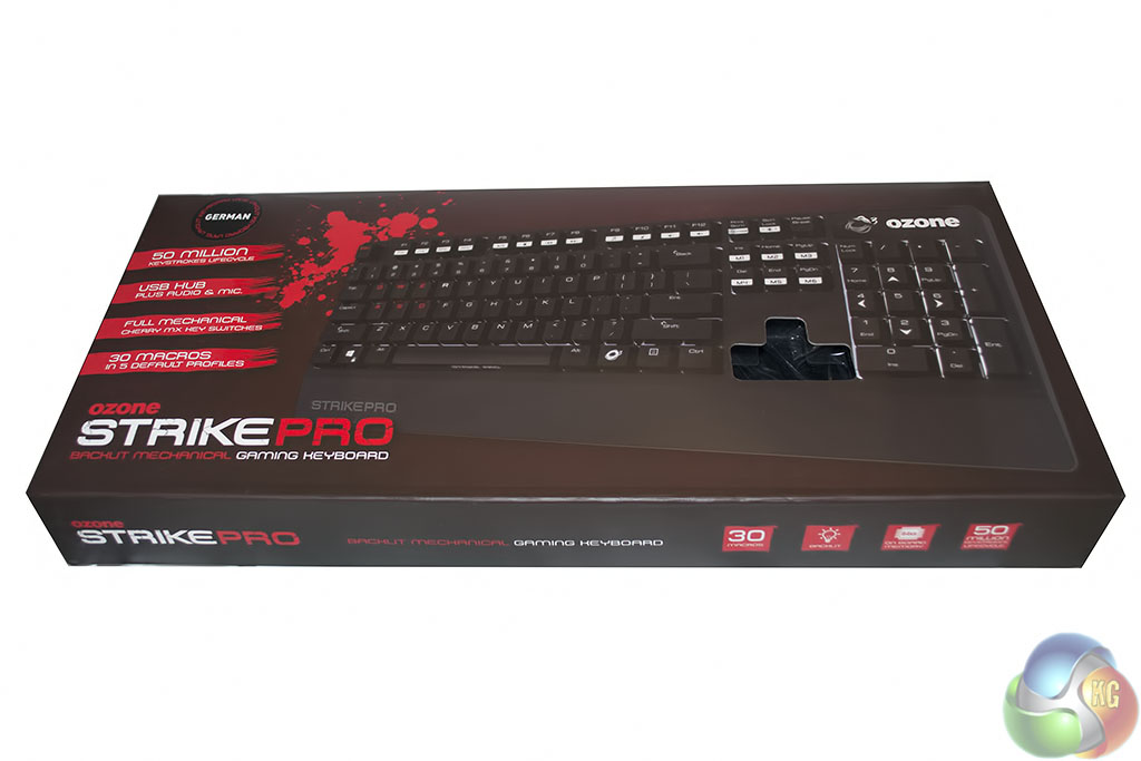 As with most keyboards, the Ozone Strike Pro doesn't come in any form of special packaging. It comes in a long box, protected by a plastic shield with a cut out for the arrow keys so that shoppers can test the key switches before buying.