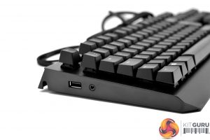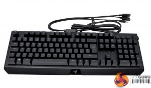Due to the USB and audio pass-through ports, there are three lengthy cables to be found coming out of the BlackWidow Elite – 1x USB for the keyboard itself, 1x USB for the pass-through port and 1x audio cable for the headphone jack.