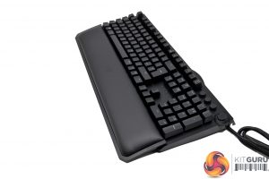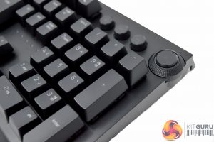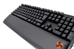Moving on to the keyboard itself, we can see that the BlackWidow has gone through quite the design change this time around. While past revisions of the BlackWidow have been primarily built out of plastic, Razer has opted for a more premium design for the Elite. Instead of plastic housing, you’ll find a brushed aluminium face plate at the top, which removes any keyboard flex from the equation. You will still find a plastic body underneath, but it feels a lot sturdier compared to other versions of the BlackWidow.
