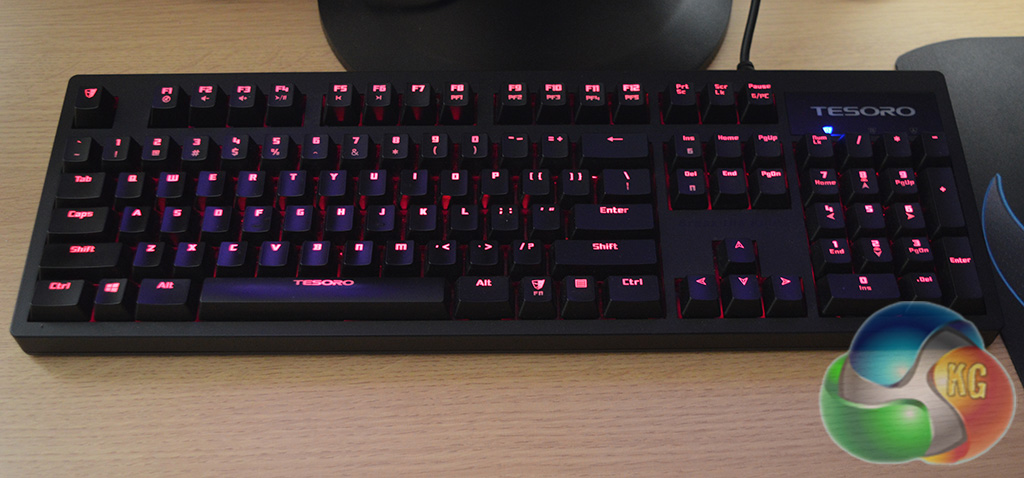 Tesoro has opted to not use a crazy design to appeal more to the gamer audience. The keyboard has a standard layout with standard keycaps, it is a tried and true design and makes for a very easy typing experience. I did not have to undergo an ‘adjustment period' in order to get used to using the Excalibur, nor did my touch typing take a hit.