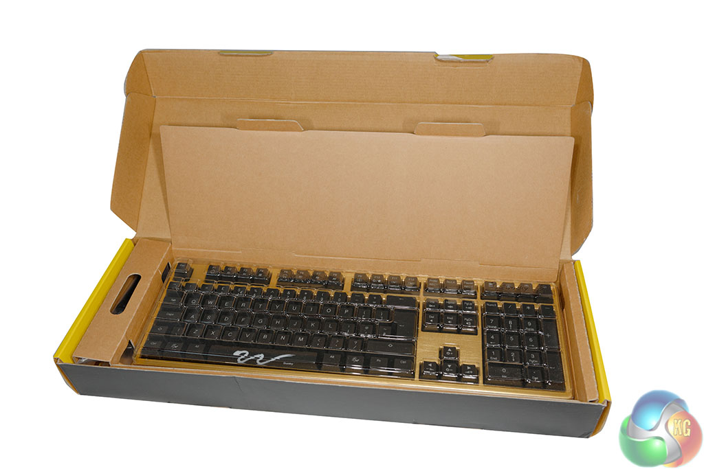 Ducky make their keyboards to support a wide range of MX switch styles. The company are using MX Green switches in our review sample – as shown by the sticker on the side of the box above.