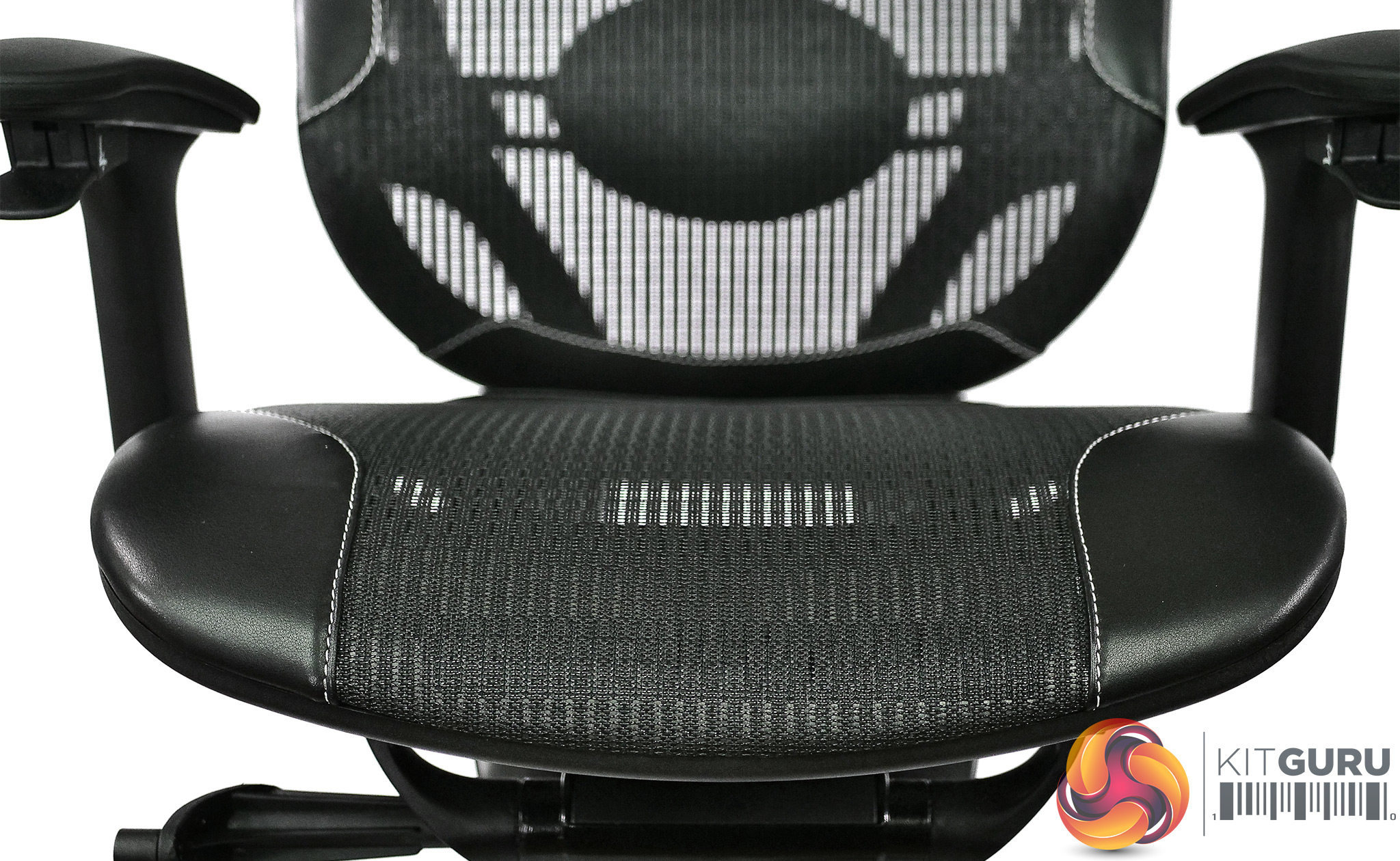 Instead of relying on squidgy padding to provide comfort they instead use an open DuPont TPEE mesh in the back and base that looks good visually and also allows air to circulate. The calfskin leather trimmings look good and feel great.