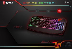 The GK40 has limited customisation built in – so you can start to play with the lights even without the control software installed. For example, the Dragon (function) key can be used in combination with certain other keys to adjust brightness, cycle colours and change the ‘wave frequency’ etc. If you want more control and multiple profiles, then you will need to download and install the latest version of the MSI Mystic Light software.