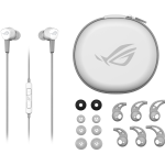 Next up are the ROG Strix Go Core and ROG Cetra II Core headphones. Firstly, the ROG Strix Go Core is a 3.5mm gaming headset that supports all platforms, from PC to Xbox, PlayStation and Nintendo Switch. The headset is equipped with ASUS Essence 40mm drivers with airtight chambers to enhance audio – it also has a certified by Discord microphone. Finally, the ROG Cetra II Core are in-ear gaming headphones, also featuring Asus Essence drivers, this time made of liquid silicone rubber.