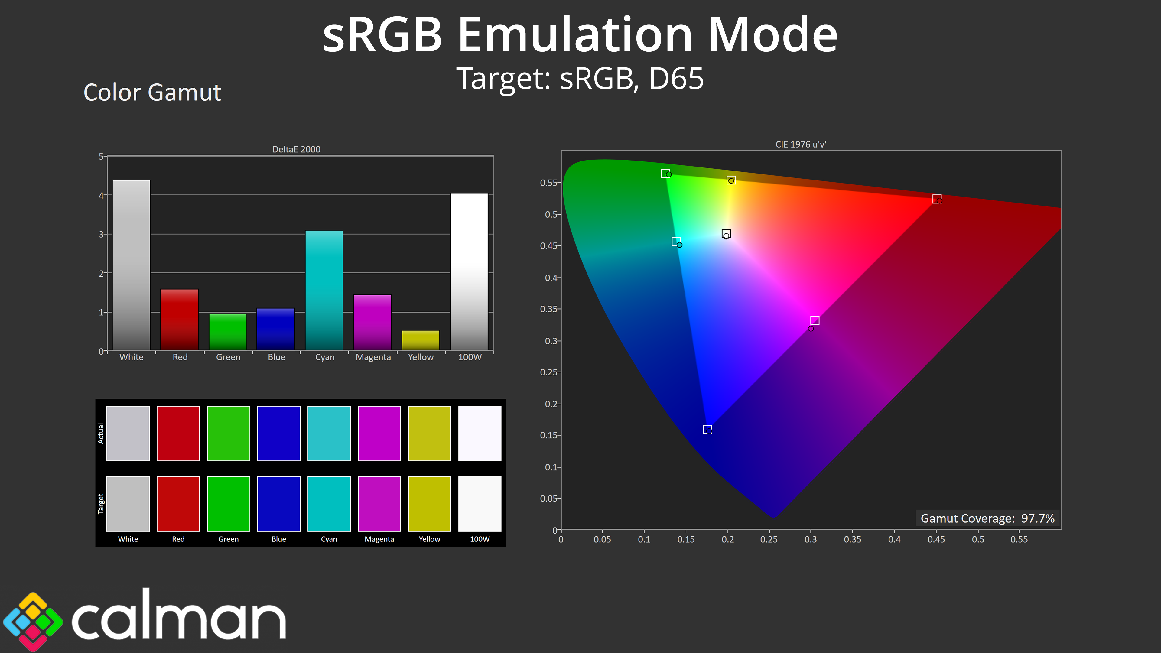That leaves us with a full calibration to show the best-possible results for this panel, and the figures are stunning, with average error rates dropping below 1 across the board, and even lower than that for the saturation and colour accuracy metrics.