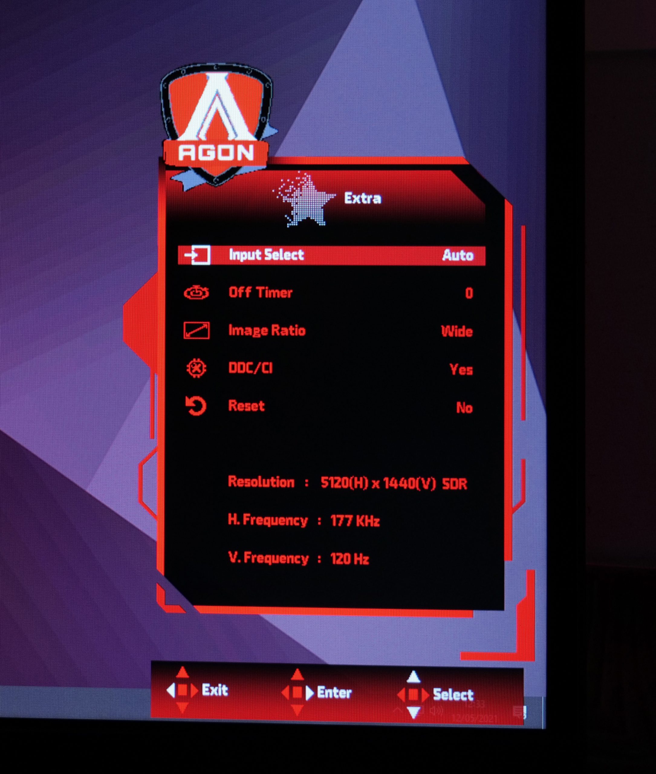 While the AG493UCX does indeed have five buttons to navigate the OSD, AOC wisely decided that using such a method on a screen this large is somewhat ungainly, so the vast majority of the time you will want to use the included remote control. This makes navigating the OSD very simple, with each screen telling you exactly how to go forward and back, and of course select your desired setting, as you are going through them.