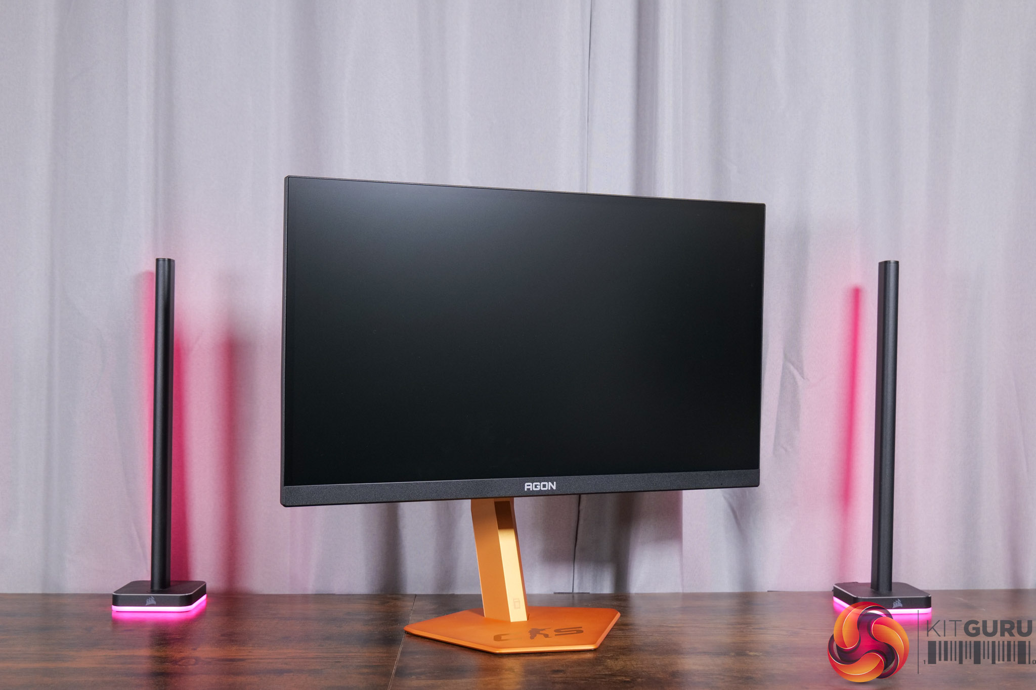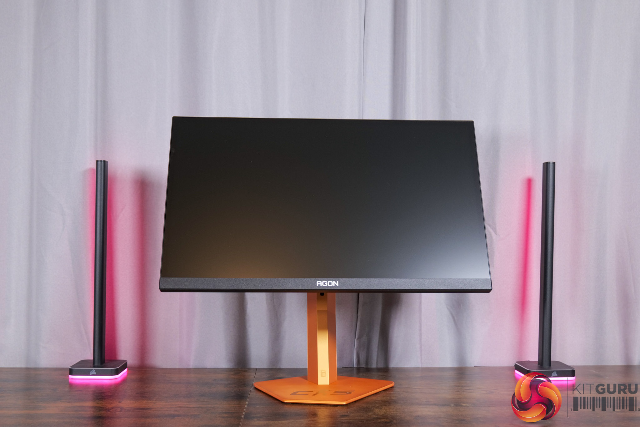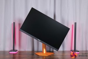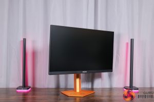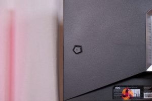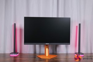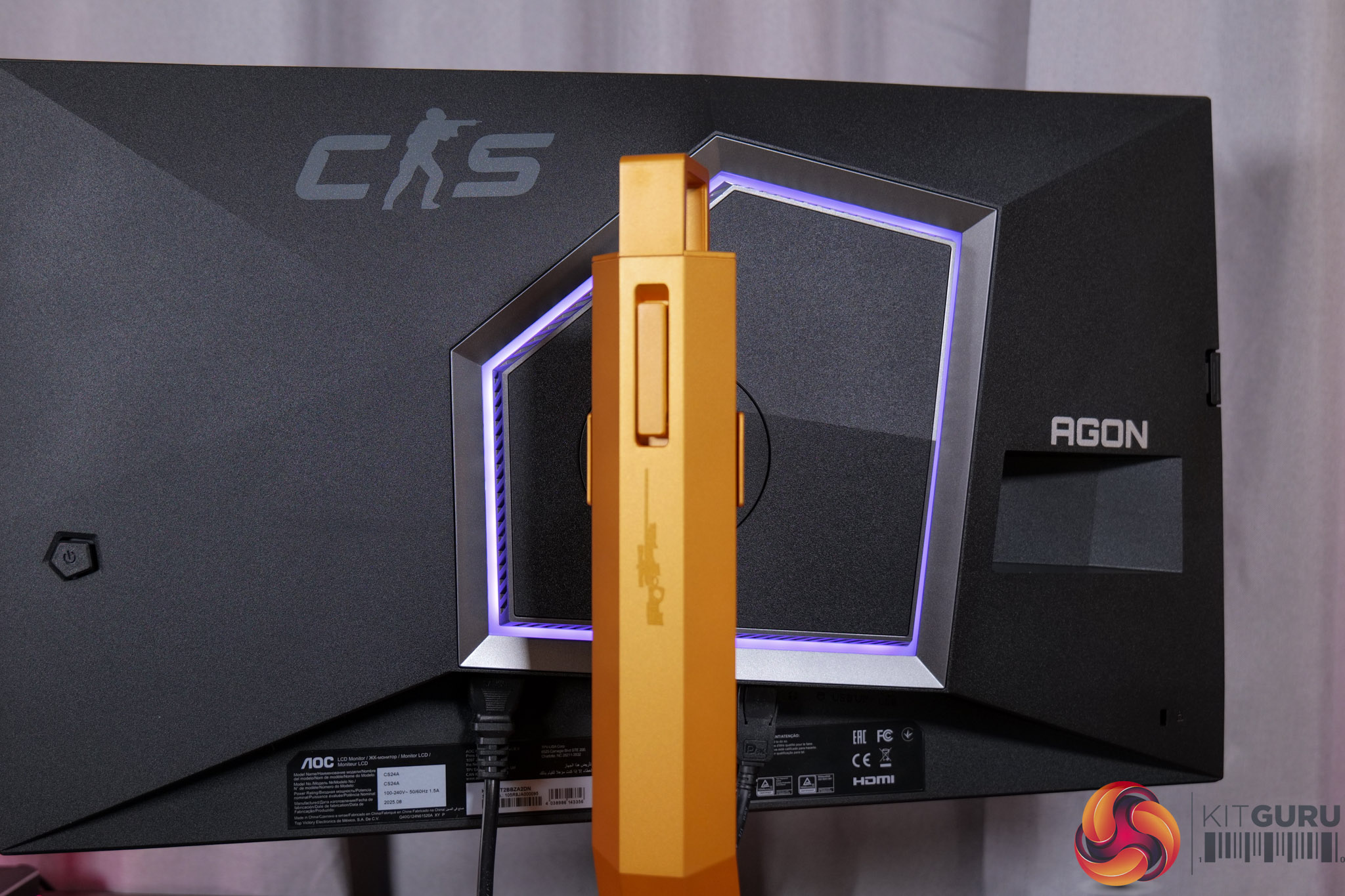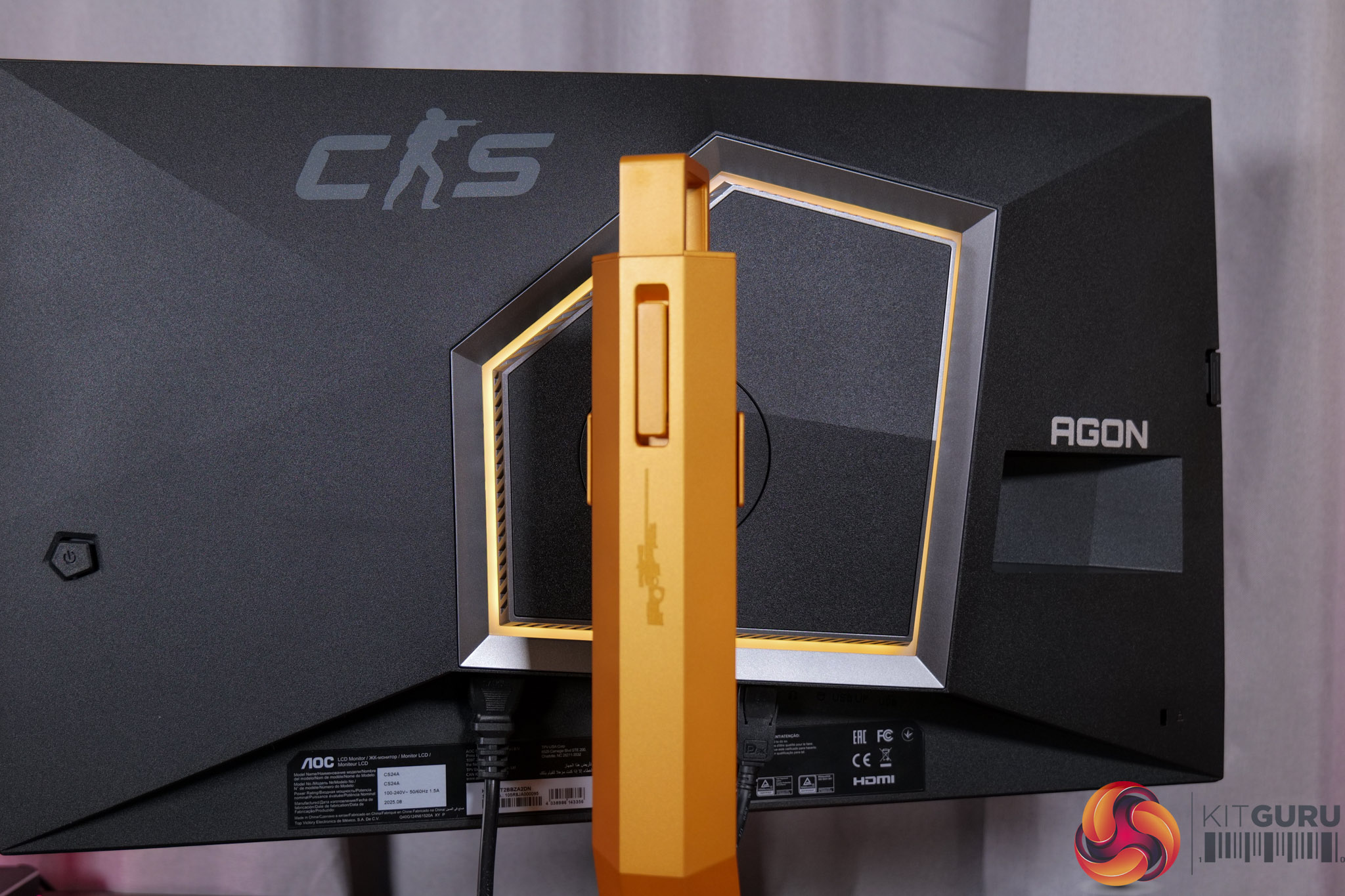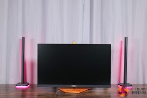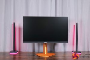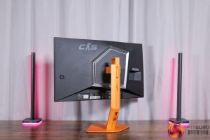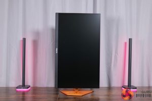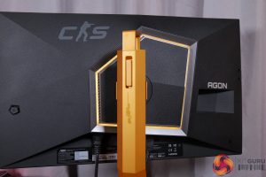 There is also some RGB lighting on the back of the panel, which by default lights up in an orangey gold colour to match, but you can configure this however you'd like in the OSD.