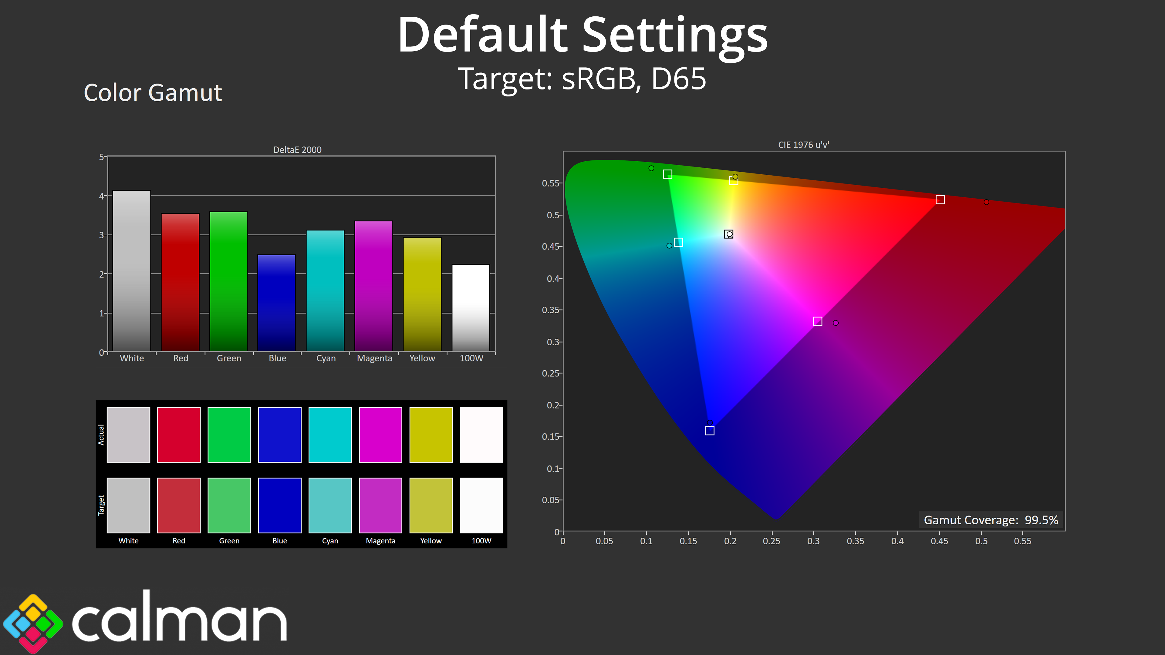 Of course, for the best results a full calibration is required, and you can see what we were able to achieve here. Again, I really don't think this monitor is geared towards the type of person who will be calibrating for image quality, but it's still good to know what it's capable of.