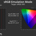 AOC also included an sRGB mode within the OSD. This is an improvement over stock performance, with a more accurate colour balance, though gamma is still too low and the sRGB mode locks users from adjusting gamma manually. Still, both saturation and colour accuracy average deltaEs improve into the low 2 range, so it's worth using if you want to improve accuracy.
