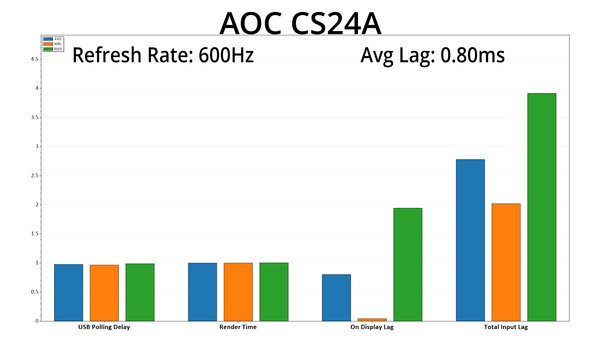 Latency is also ultra-low thanks to the super-high refresh rate, averaging just 0.8ms, which is basically half a frame at 600Hz, so nothing at all to be concerned with.