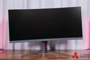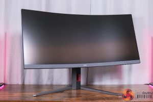 The built-in stand also offers a good variety of ergonomic adjustments. We find up to 130mm height adjustment, 20 degrees of swivel both left and right, along with tilt from +20 to +3.5 degrees. Pivot isn’t officially supported but there is a little play in the stand so you can rotate it just a little bit as you can see above. VESA 100×100 mounts are also supported, while you can get an idea of the 1500R curvature from these photos, too.