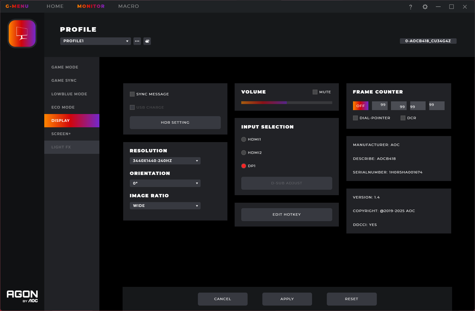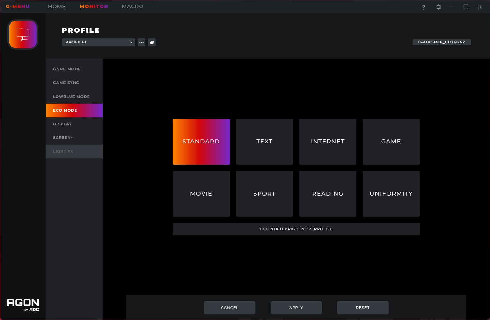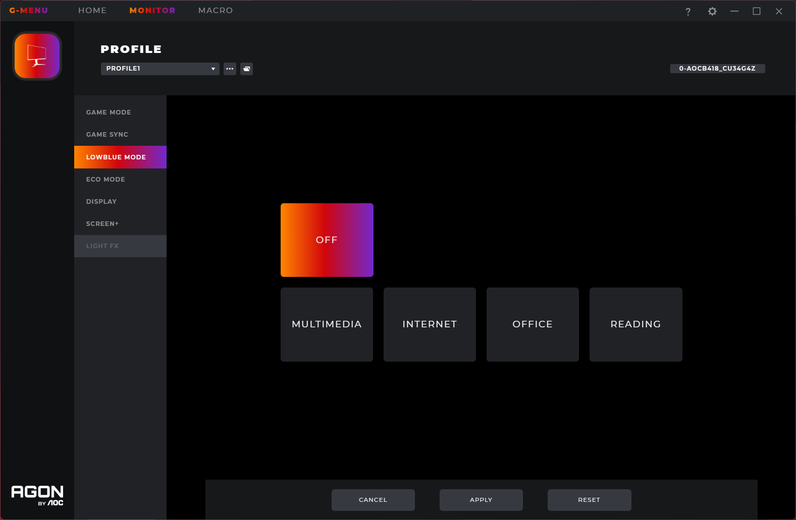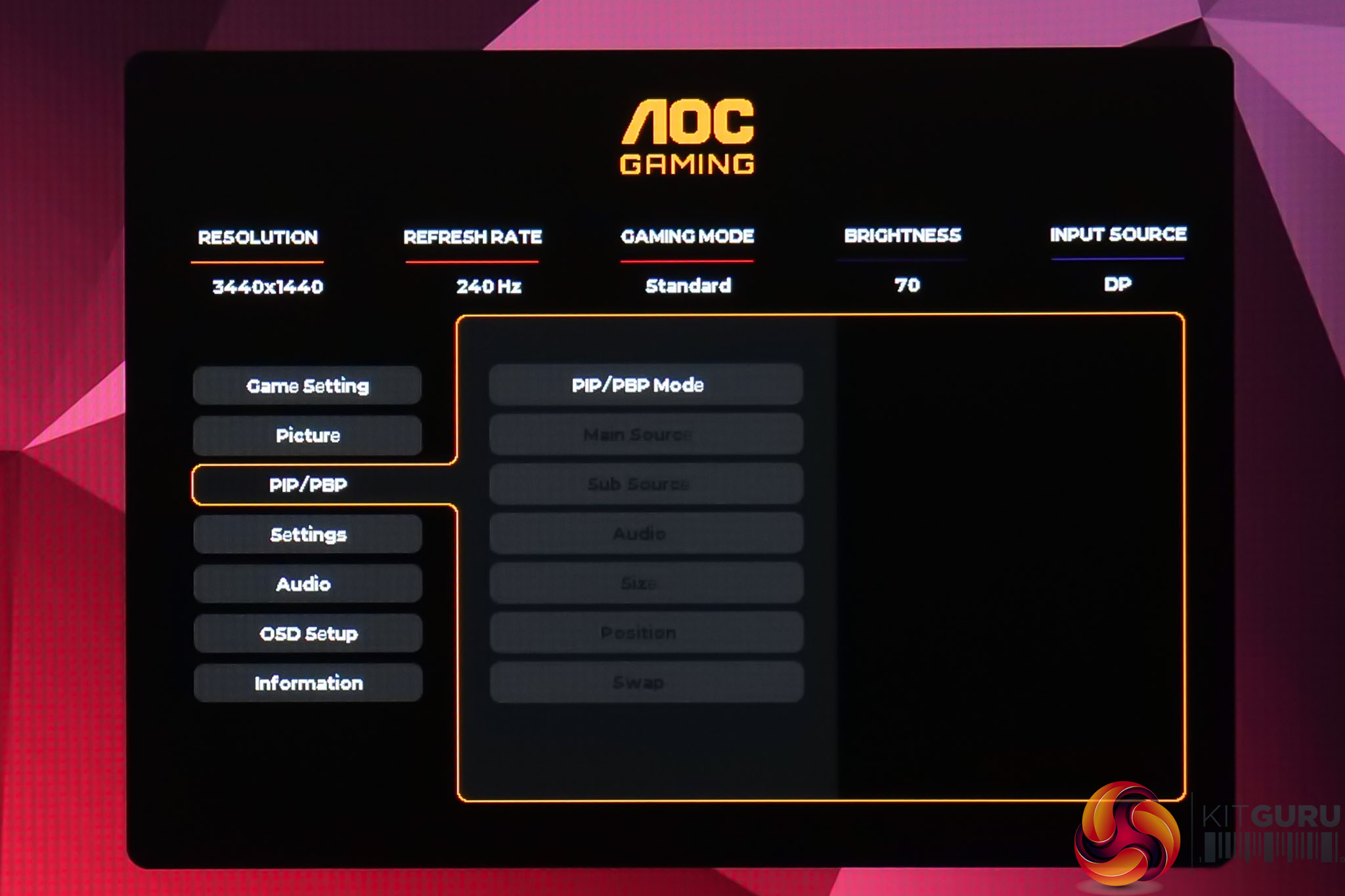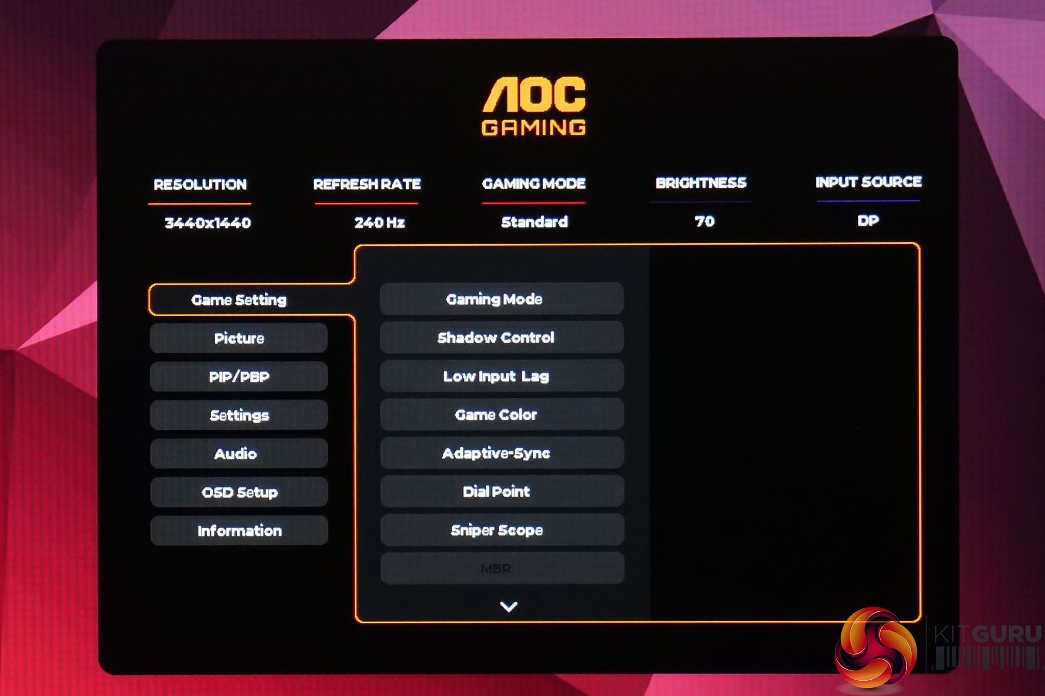 AOC also offers its GMenu software for use with the CU34G4Z, providing the same controls as the OSD, but for use directly from the desktop – a nice addition. It can also be used to update the monitor's firmware, a feature I always like to see included, so credit to AOC there.