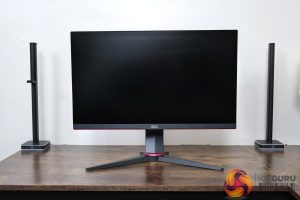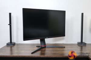 Connectivity is an area where clear cutbacks have been made. The Q24G2A offers just two display inputs, with one HDMI 2.0 and one DisplayPort 1.2. The HDMI 2.0 port limits the refresh rate to 144Hz, but 165Hz is obviously possible vis DisplayPort 1.4. There are no other USB passthrough ports, USB-C or anything like that – a 3.5mm audio jack is the only other connection on offer. It really is a very basic setup, even for the price you’re not get much in the way of options here.