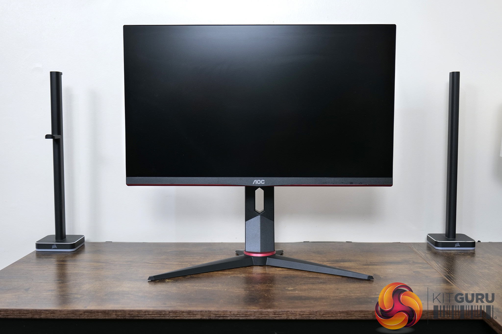 We can also note the five physical buttons on the underside of the front chin. These control the OSD, with no joystick on offer here from AOC, another cost-saving exercise.
