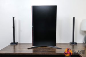 It's absolutely fine in my opinion and the side and top bezels are all nice and slim. I would have preferred a square base instead of the v-shaped foot we have, but it's still fairly compact at 43cm across. Build quality could be improved however, as it does feel quite plasticky overall, though this isn't the end of the world provided you aren't constantly touching or moving the monitor.