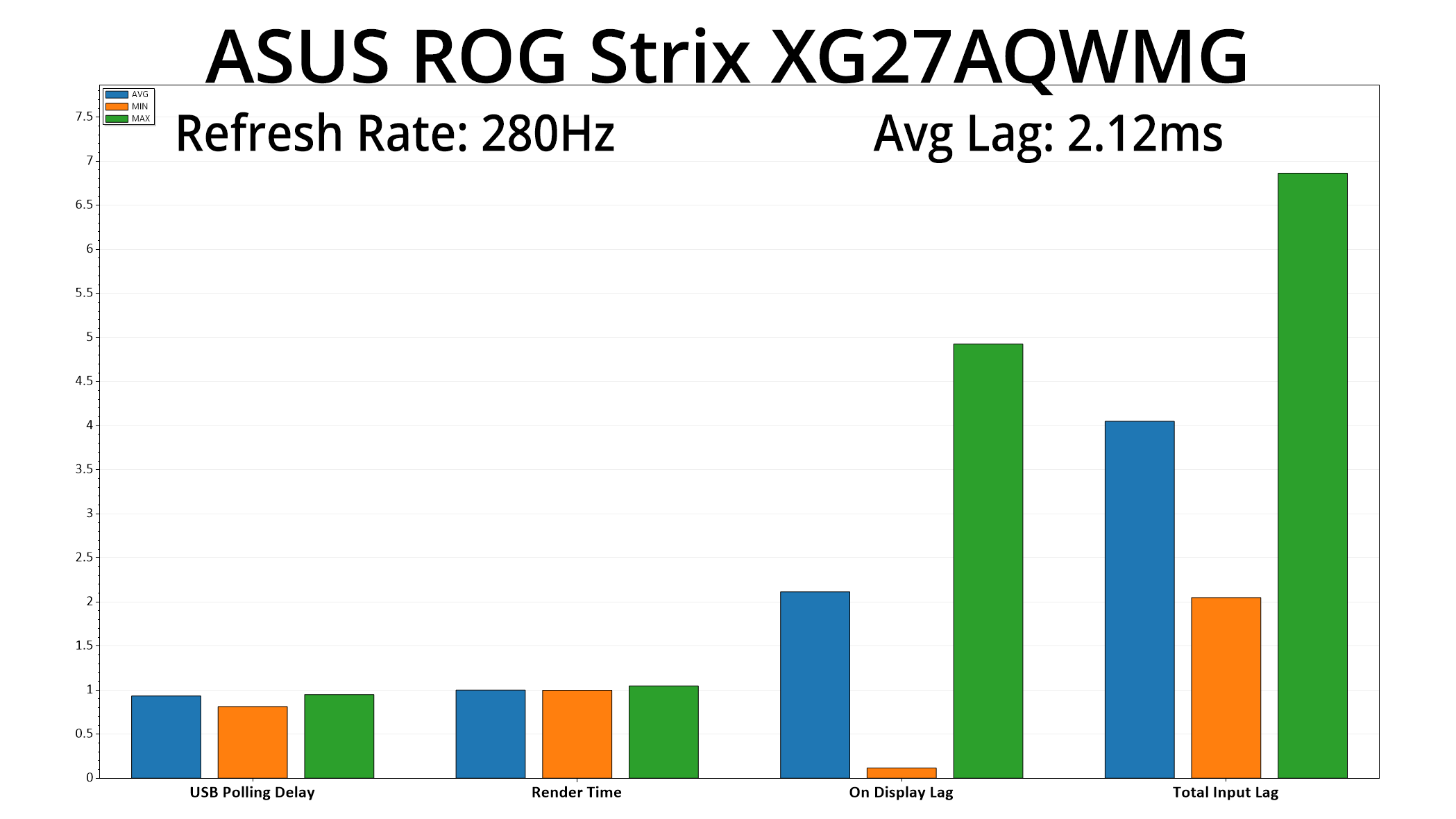 Latency is nice and low too, hitting just 2.12ms, so barely more than half a frame at 280Hz.