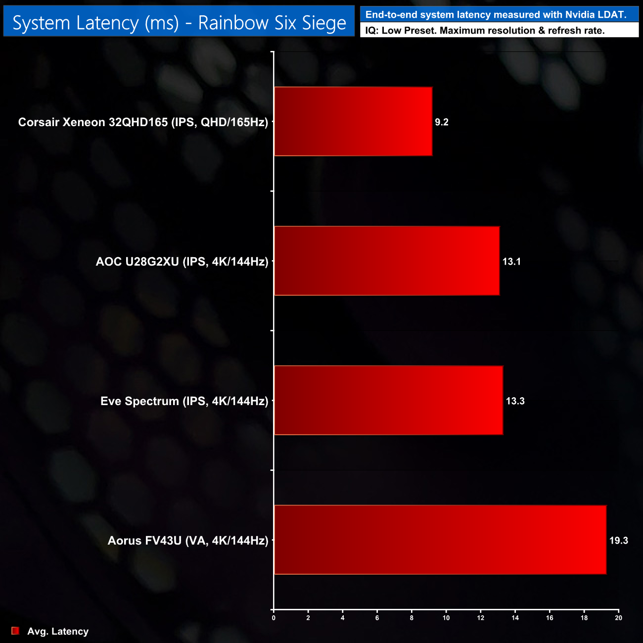 As this is end-to-end system latency, we are not measuring only the processing/input latency of each monitor we test. However, we can standardise the test process so the monitor is the only variable. It also gives an insight into how different refresh rates and resolutions can affect end-to-end latency, which is of course highly relevant to your purchasing decision.