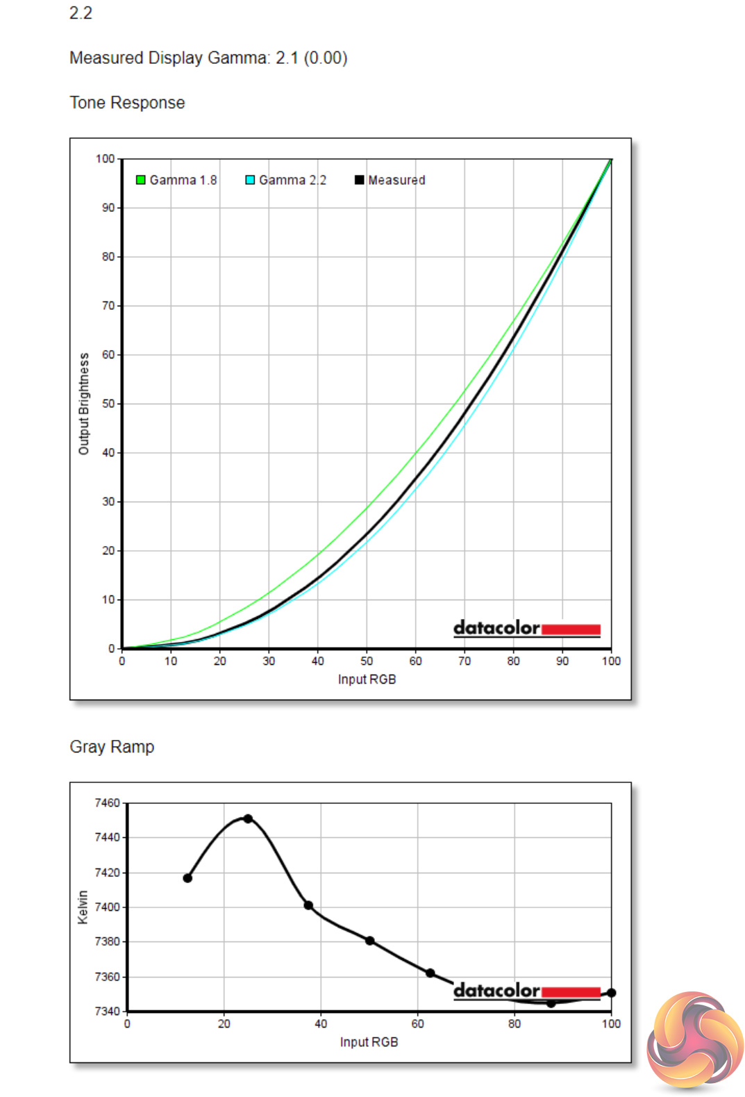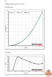 The Spectrum offers four different gamma settings – 2.0, 2.2, 2.4 and 2.6 Apart from the 2.0 setting, which was spot on, the other three modes all reported 0.1 below their intended target, so the 2.2 setting delivered a measured gamma value of 2.1.