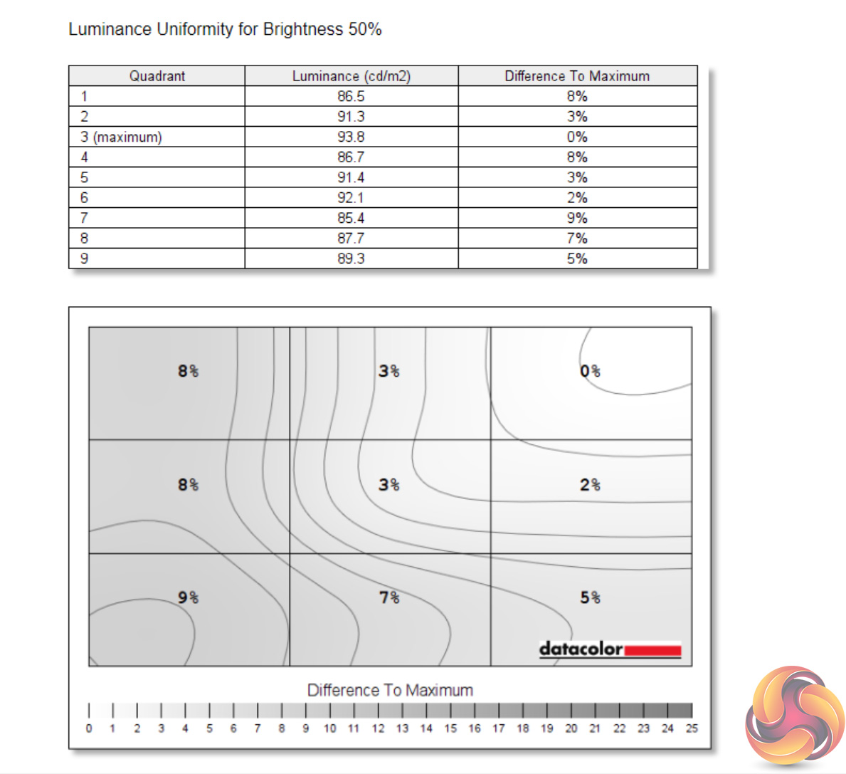 - The brightness deviation across the panel.